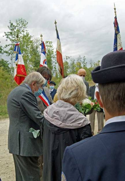Dépôt de gerbe de Leménil-Mitry par Henri et Jean-Hyacinthe de Mitry, accompagnés par Anne Duperron, fille du capitaine Duperron, tombé au Ménil le 3 septembre 1944 Leménil-Mitry : photos Michel Lakomski |