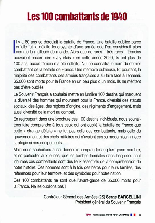 Pour le 1er novembre, ce bulletin spécial du Souvenir Français, qui rappelle la mémoire de 100 combattants, morts pour la France en mai-juin 1940.