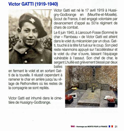 Parmi ces 100 noms, deux Meurthe-et-Mosellans … l’abbé Jean Feuillebois… né à Vézelise, et Victor Gatti, né à Hussigbny-Godbrange