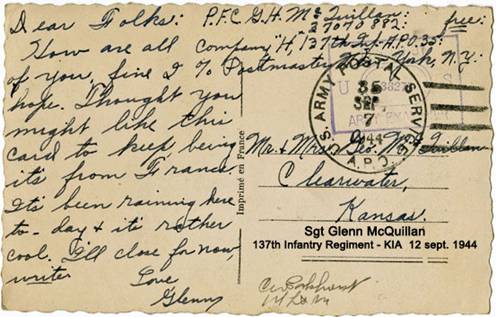 1)Le Sergent Glenn McQuillan, KIA le 12 septembre 1944