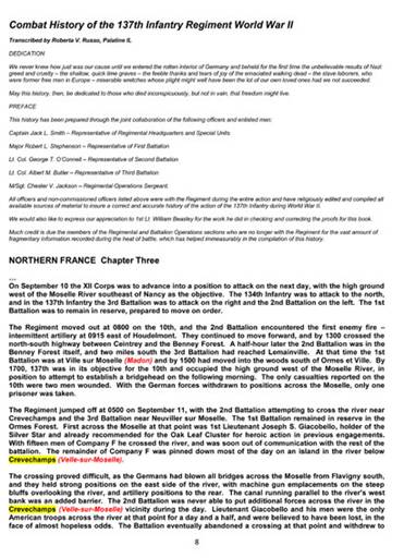 un article sur le franchissement de la Moselle par le 137th Infantry
