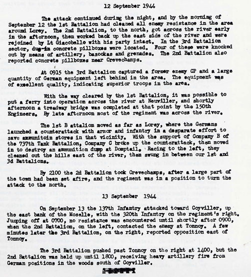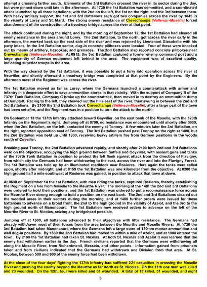 et sur la traversée de la Moselle par le 137th Infantry Regiment, le