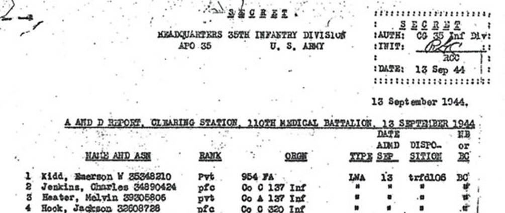 secours du 110th Med. Battalion, un nom avec un numéro matricule