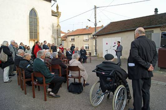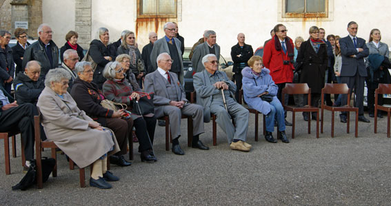 ![]() Dans l’assistance, notre doyenne, « Matou », ancienne du BOA, Fernand, ancien du Maquis 15, Marcel Louis, ancien du GL 42 et du 1/150ème, André Claudel, arrêté avec 3 de ses camarades en novembre 1940, condamné à mort en février 1941, condamnation commuée en peine de 10 ans d’internement en forteresse en Allemagne, libéré par les alliés en mai 1945, ancien maire de Damelevières, Madame Stempfel, ainsi que des enfants d’anciens du GL 42. |