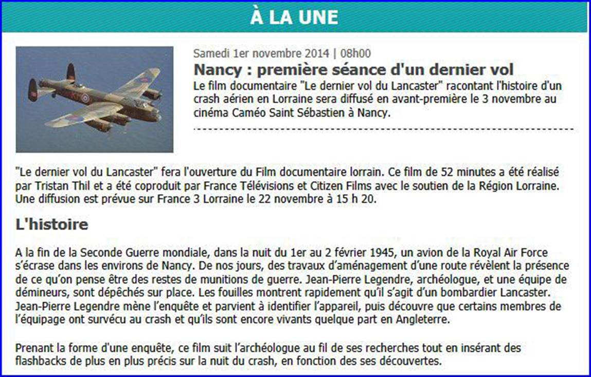 « Le dernier vol du Lancaster »