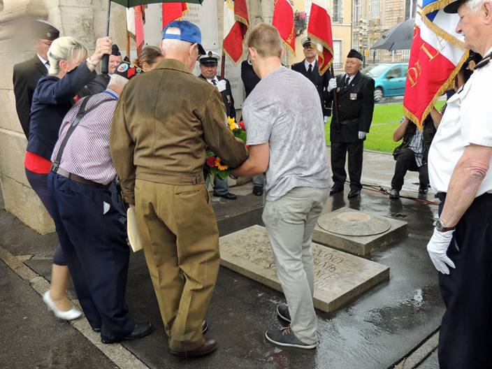 ![]() Avec Hugo, des fleurs en mémoire des volontaires