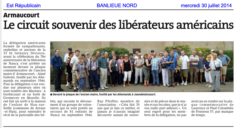 Organisé par l’Association des Vétérans de la 35th Infantry