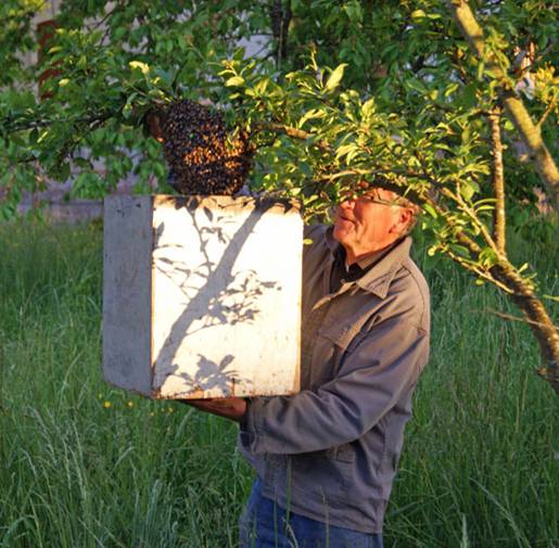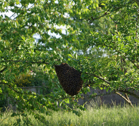 ![]() Surprise lorsque tout est rangé, la découverte d’un essaim d’abeilles dans un mirabellier situé juste derrière … les plaques tout juste arrivéesUne heure et demi plus tard, en rien de temps, l’essaim est récupéré par Claude, un apiculteur de Goviller. ET, et, …ça ne s’invente pas, c’est le père de Claude qui avait réalisé en son temps la première installation électrique du dépôt de Crépey ! |