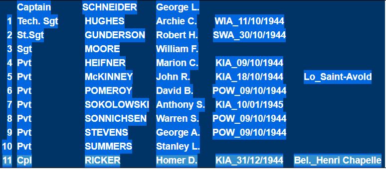 Compagnie H du 134th, d’où une légère confusion, dans la mesure où ce