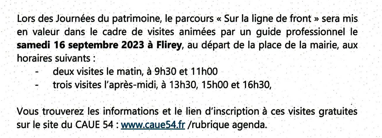 Tout en profitant de votre visite du village de Flirey, et grâce à l'application Archistoire, vous pourrez également vous plonger dans les tranchées de Bois-le-Prêtre, découvrir la nécropole d'hommage du Léomont ou encore la guerre des mines qui s'est déroulée au Col de la Chapelotte, et bien d'autres sites encore.