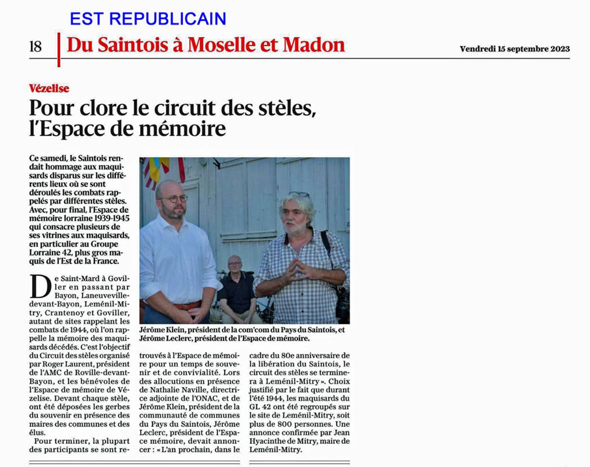 Pour 2024, année du 80ème anniversaire de la Libération, il est envisagé de commencer le circuit des stèles à Goviller, et de terminer ce même parcours à Leménil-Mitry, PC du GL 42 en août-septembre 1944.