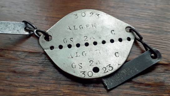 ![]() Coïncidence extraordinaire, comme cela arrive fréquemment à l’Espace de Mémoire, la plaque d’identité de Charles Nussbaum engagé dans l’Armée française à Alger après sa libération de Tambow… |