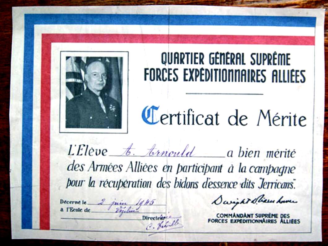 La copie du « Certificat de Mérite décerné à Antoinette Arnould de Vézelise le 2 juin 1945 »