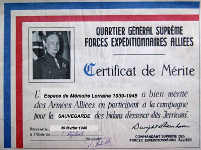 Certificat de Mérite signé par le Commandant Suprême des Forces