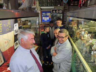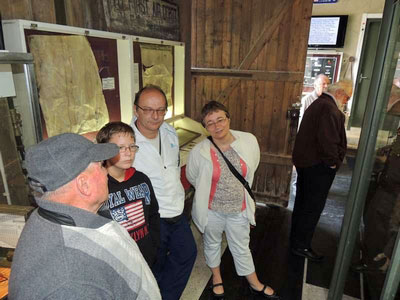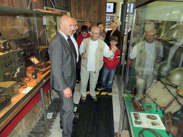 ![]() Guide, Roger Conrad, est venu apporter une importante documentation sur Benney pendant les deux guerres. Gino, qui découvre l’exposition 2014. |