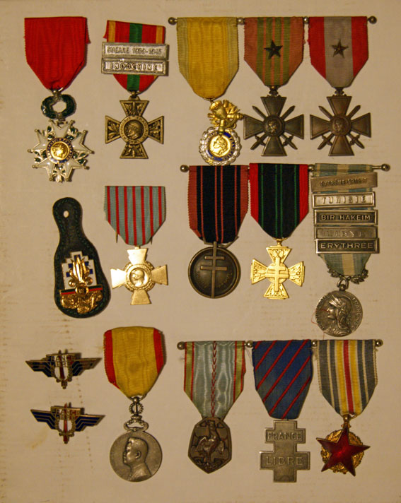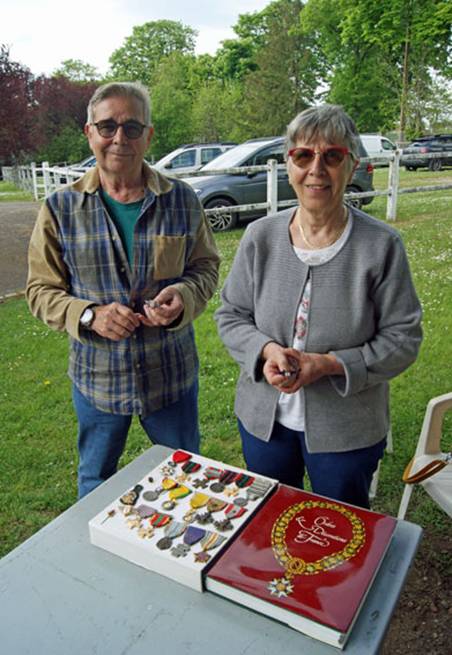 Samedi 7 mai, début d’après-midi, SUPRISE, seconde visite de Monsieur et Madame Hacquard. Ils ne viennent pas les mains vides… deux cartons contenant TOUTES les médailles du père de Madame Hacquard.