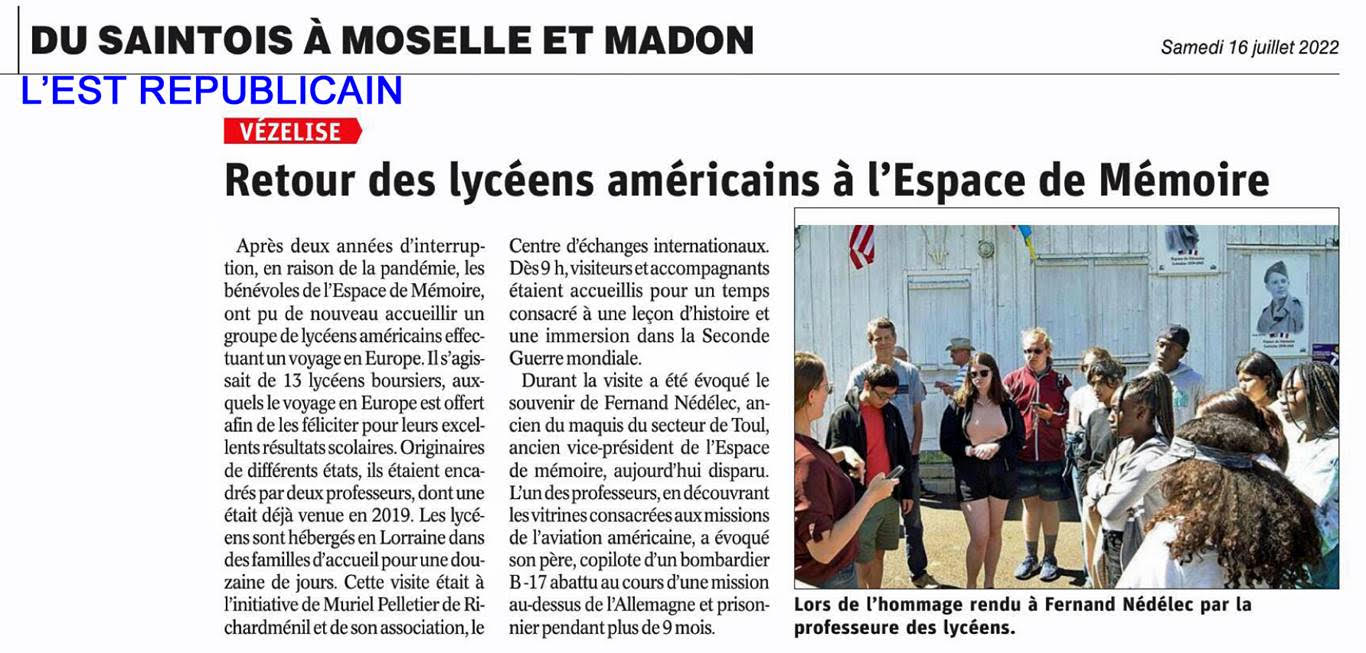 Mémoire ont pu à nouveau accueillir un groupe de lycéens américains