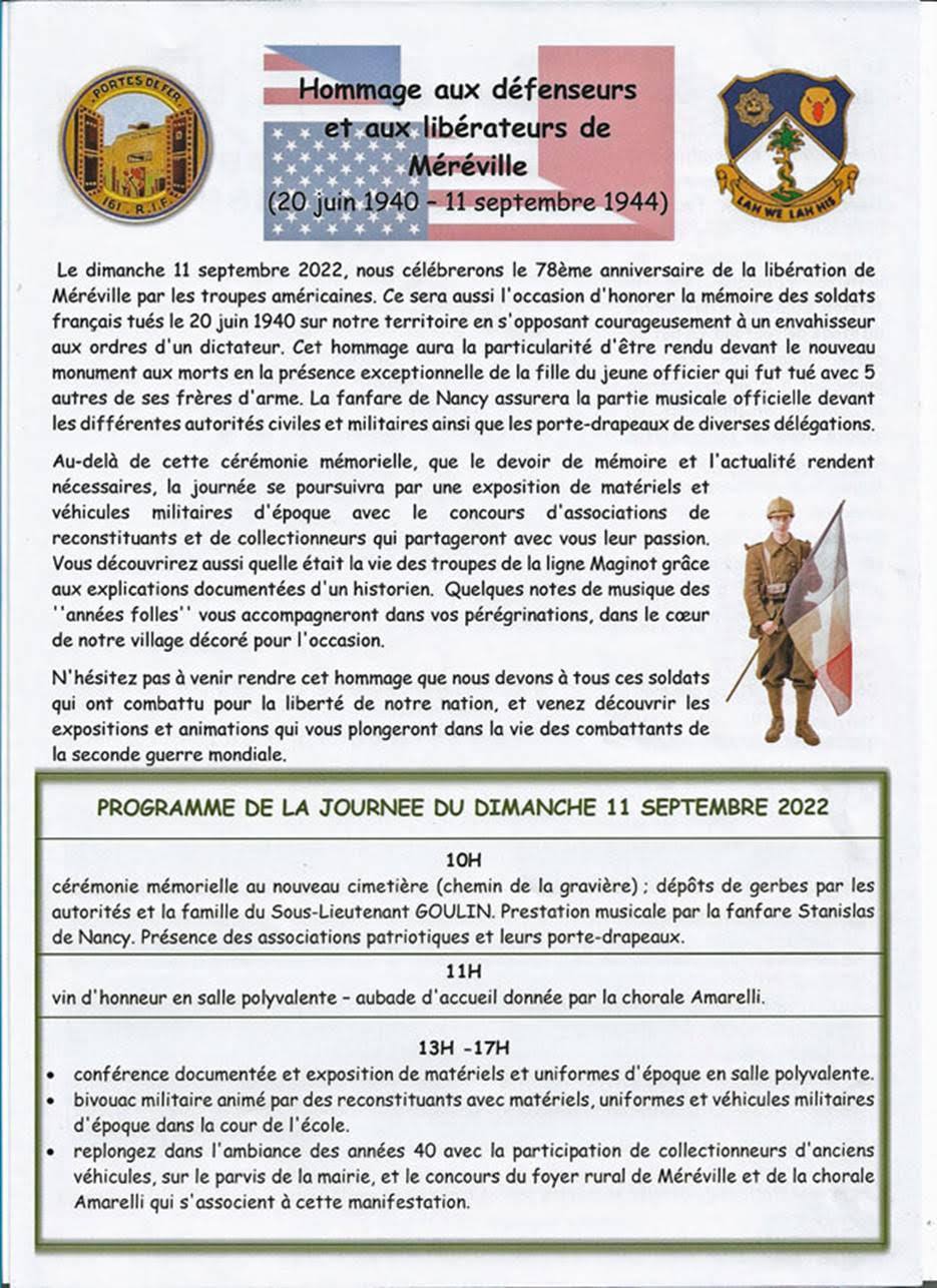 Méréville dimanche 11 septembre 2022 82ème anniversaire des combats de juin 1940 78ème anniversaire de la Libération |