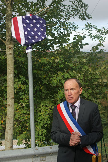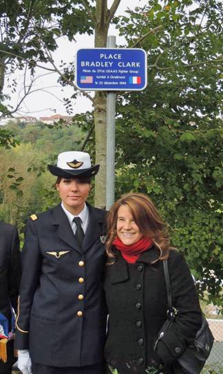 ![]() L’Aspirant Amandine Alin, marraine de la tombe de Bradley à Dinozé |