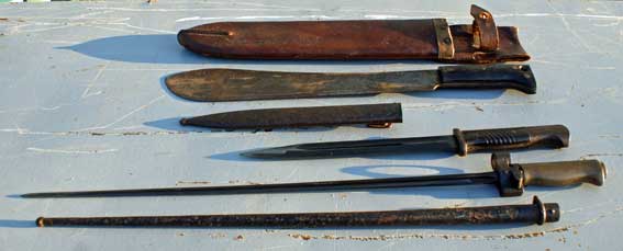 ![]() Autres arrivées ce 16 août, une machette US de 1943, une baïonnette « Rosalie » française, ainsi qu’une baïonnette allemande pour fusil Mauser,