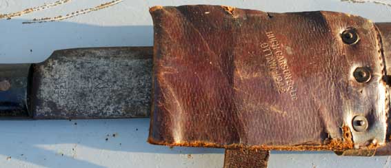 ![]() machette US datée 1943, fourreau canadien daté 1942