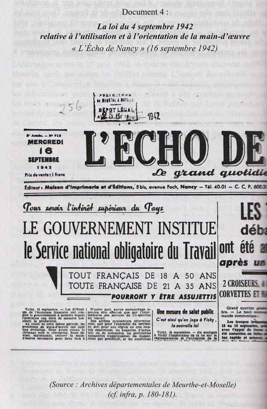 4 septembre 1942, première loi du Service du Travail Obligatoire (STO)