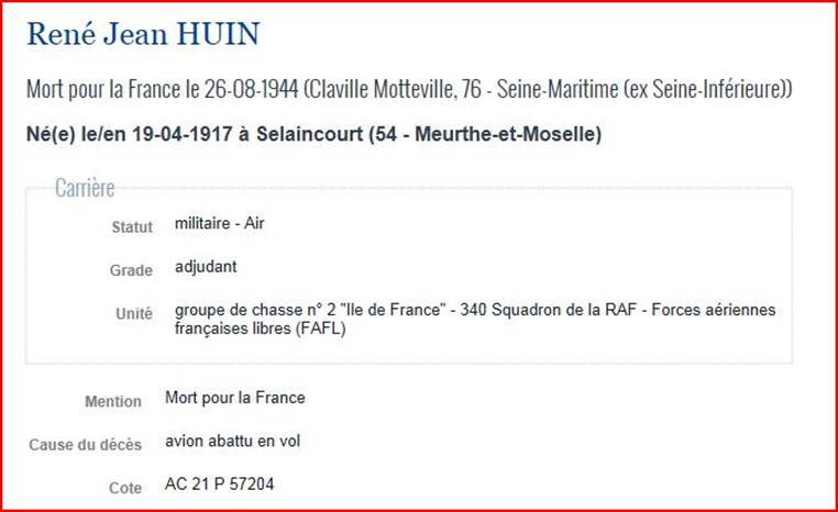 né à Selaincourt, Mort pour la France le 26 août 1944, dont le