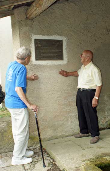 Avant le départ, les deux Vétérans vont découvrir à Omelmont la plaque dédiée à Bradley Clark. Une vraie poignée de mains lorsqu’ils se sont séparés … Et … peut-être à l’année prochaine à Vézelise si, si … Un grand moment, messieurs ! |
