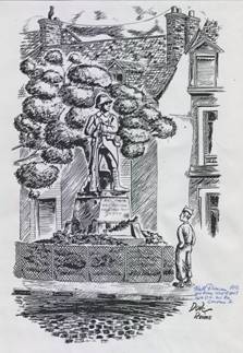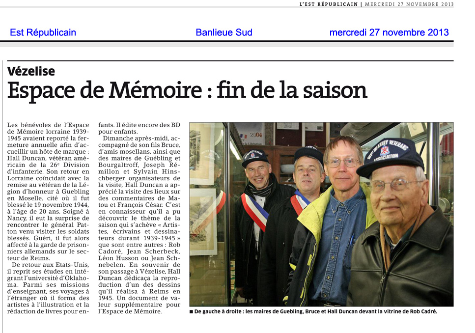 ![]() Souvenir de cette visite, la reproduction d’un dessin réalisé par Hall à Reims en 1945 |