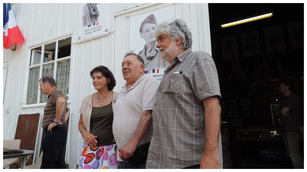 « Zaza », nièce de Pierre Magrot, aviateur des FFL tombé au combat, venue avec un de ses petits-fils