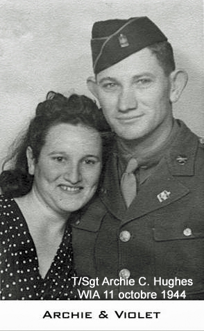 | retour Dossier Patrouille des bébés Merci à Marilyn, qui vient d’envoyer ses notes prises suite à la conversation qu’elle a eue aujourd’hui avec Carol, l’une des filles d'Archie C. Hughes ![]() | Archie C. Hughes est né le 9 mars 1918, à Oiltown (ou Oilville) en Louisiane. Il vivait au Nouveau-Mexique où il s'est engagé dans l'armée. Il a rencontré sa femme, Violette dans l'Oregon. Il a vécu jusqu’à l’âge de 81 ans. Ils ont eu 4 enfants : Carol – née en mars 1944 Deux fils jumeaux - 1946 Barb - née en 1948 Il a apprécié de servir dans l'armée où il était sergent instructeur. Il a formé des soldats japonais-américains, à Reno, pense Carol. Souhaitant participer à la guerre, il a demandé à être envoyé soit dans le Pacifique ou sur le théâtre européen. Il était fier d’avoir formé de jeunes hommes à devenir des soldats. Il était aussi fier d’avoir participé à sauver les enfants de Han Ce sont les deux choses dont il parlait avec émotion. Blessé le 11 Octobre, 1944, il a été évacué vers l’Angleterre pour y être soigné, avant d’être rapatrié vers les États-Unis. Il n’a pas été renvoyé sur le front. Son frère avait également été blessé, et Carol pense qu'ils se sont retrouvés en Angleterre, occasion d’une courte rencontre. Il est resté en contact avec quelques-uns de ses camarades pendant un certain temps, puis ils ont perdu le contact. Carol se souvient l’avoir entendu parler d’un de ses copains du Michigan. Gunderson ? Elle ne se souvient pas du nom. À propos de l’épisode de Han: Il était très fier d’y avoir participé. Il a évacué deux enfants, un sous chaque bras. Celui qui pouvait marcher lui tenait la main, tandis qu’il portait le second. Il a parlé des nounous françaises qui étaient avec les enfants. Il était vraiment fier d’avoir aidé à sauver des enfants. Après la guerre il a travaillé pour le chemin de fer au Nouveau-Mexique, puis, après être parti dans l'Oregon, il réparait des tondeuses à gazon. Enfin à Astoria dans l'Oregon, il a travaillé comme employé civil pour la Marine. ll appartenait à plusieurs associations d'anciens combattants, dont celle des anciens combattants handicapés VFW, et à l’American Legion. Il avait le sentiment d’avoir fait quelque chose d’utile pour arrêter un grand mal. |