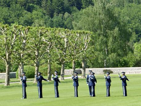![]() Les honneurs sont rendus et les soldats tirent une salve à la mémoire des combattants tombés pour la paix |