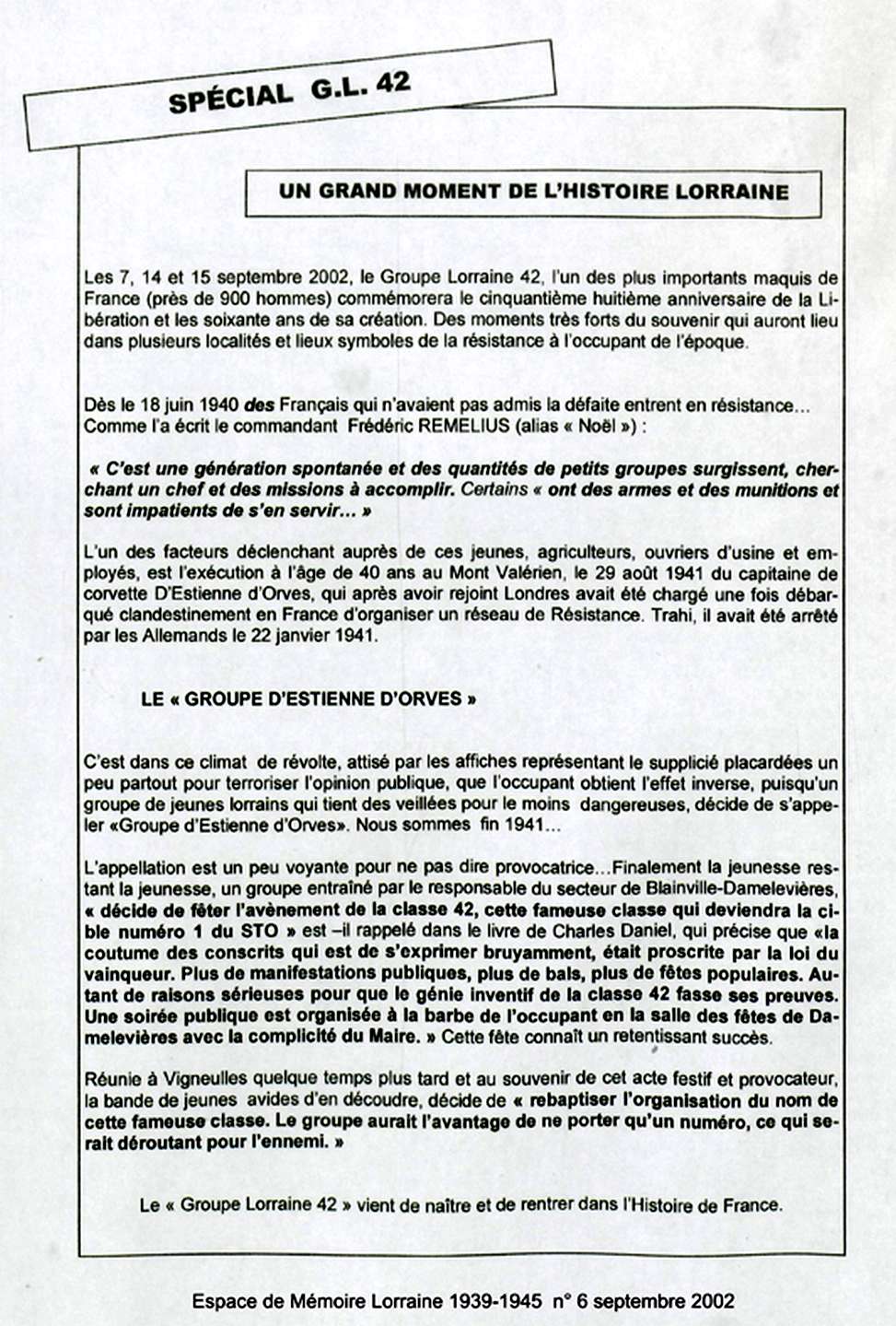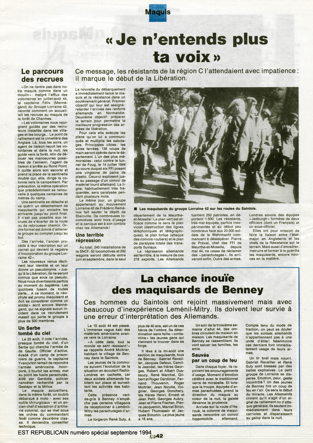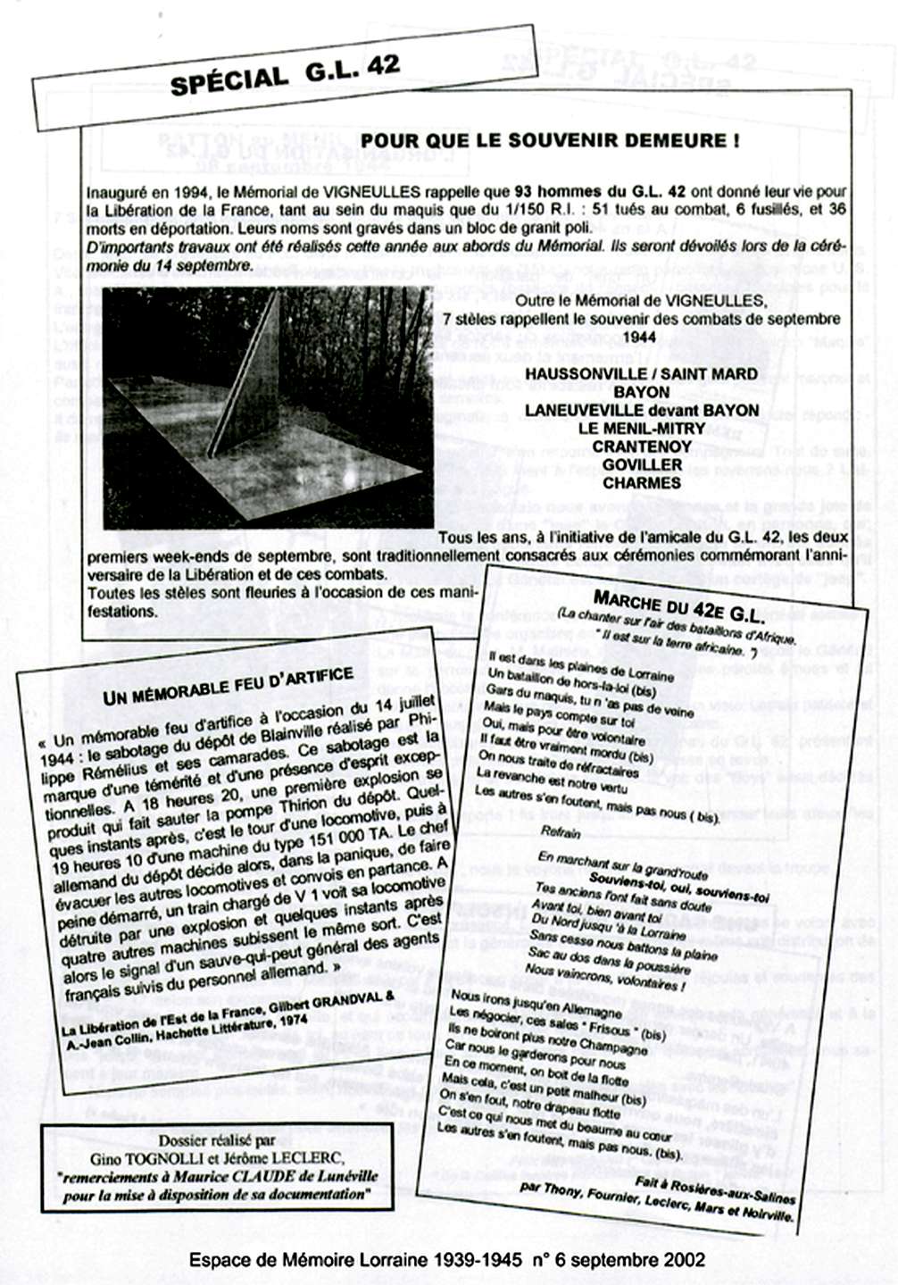 Articles 1944 - 1994 Historique du Maquis Cérémonie de septembre 2012 Circuit des Stèles du GL 42 Haut de page