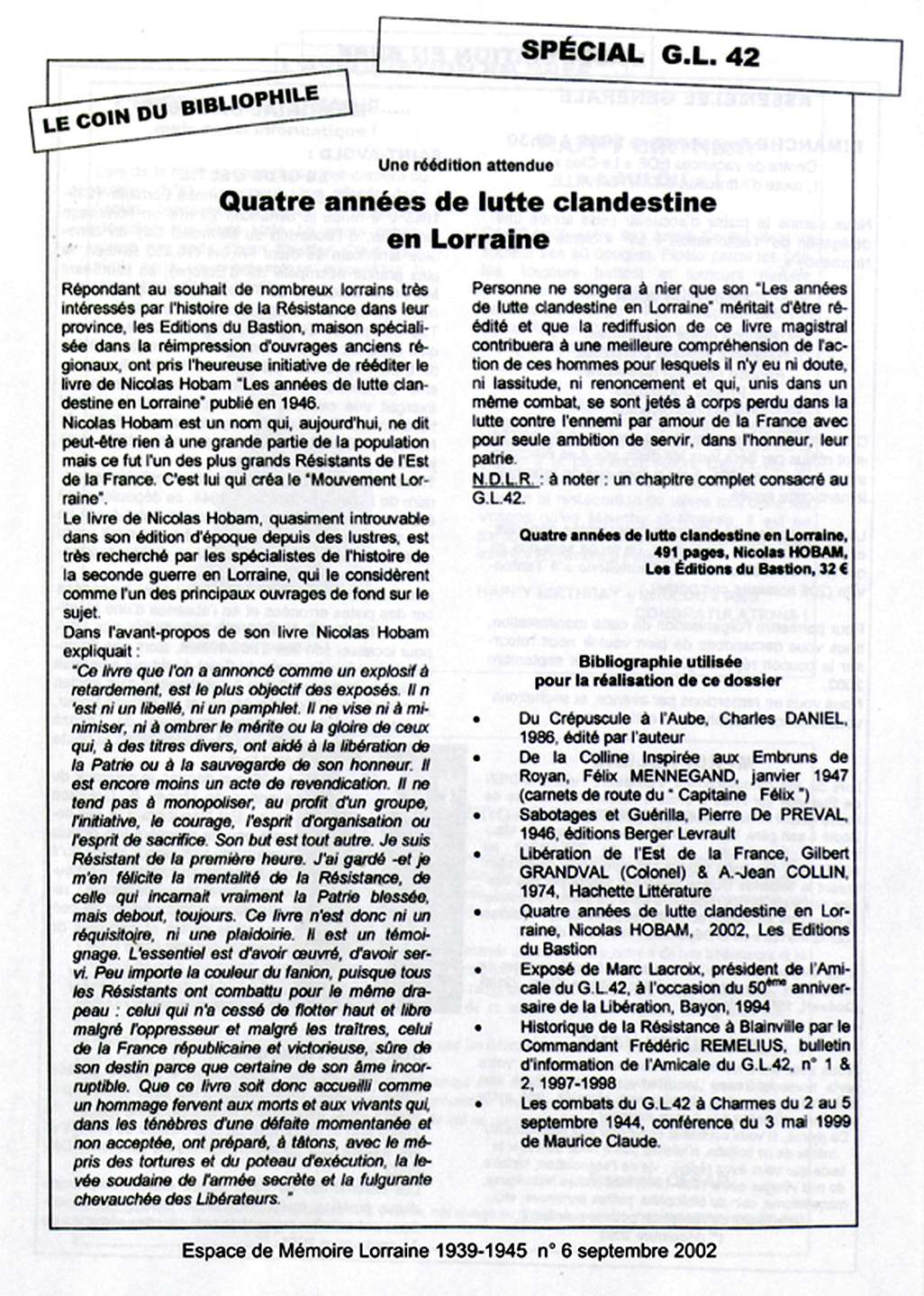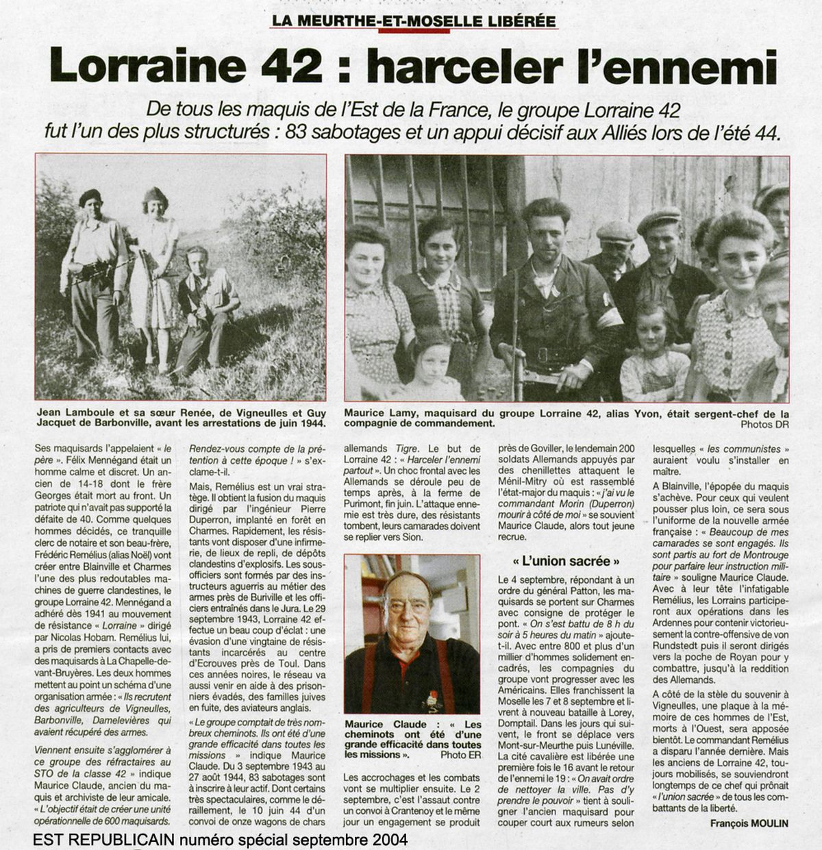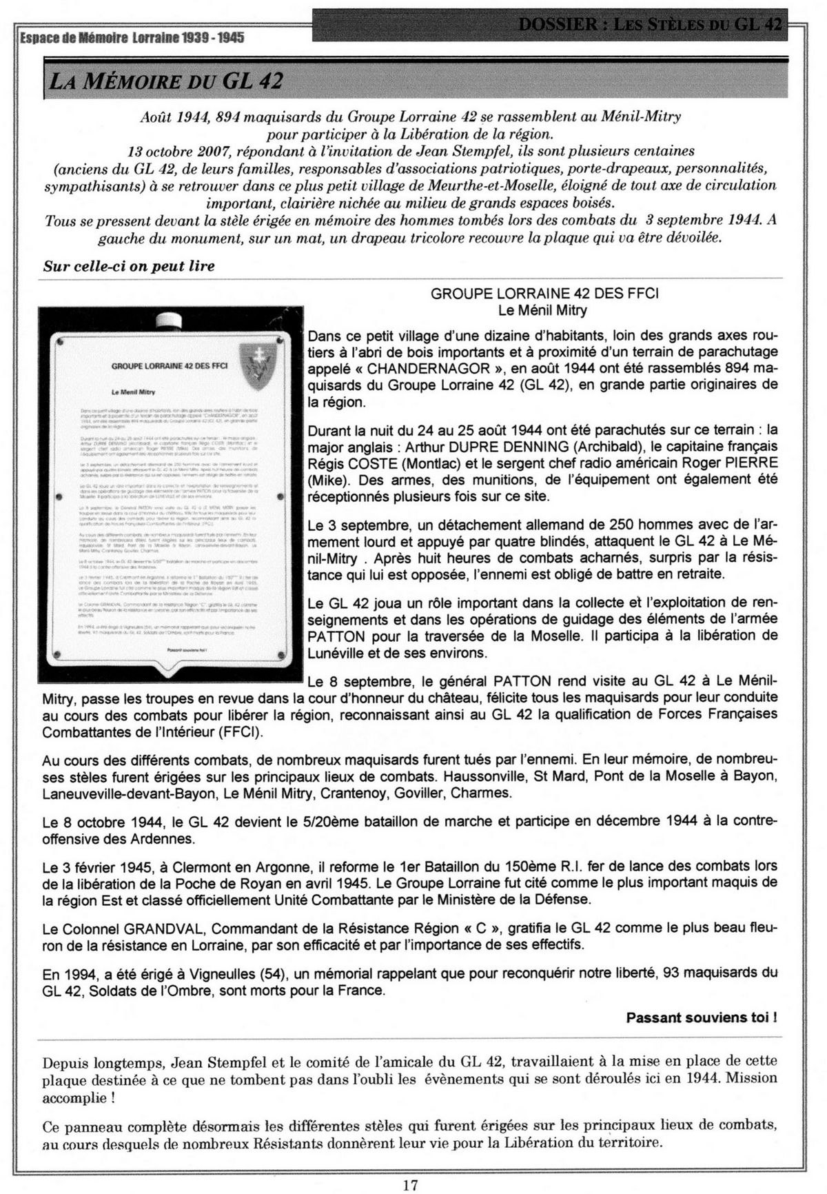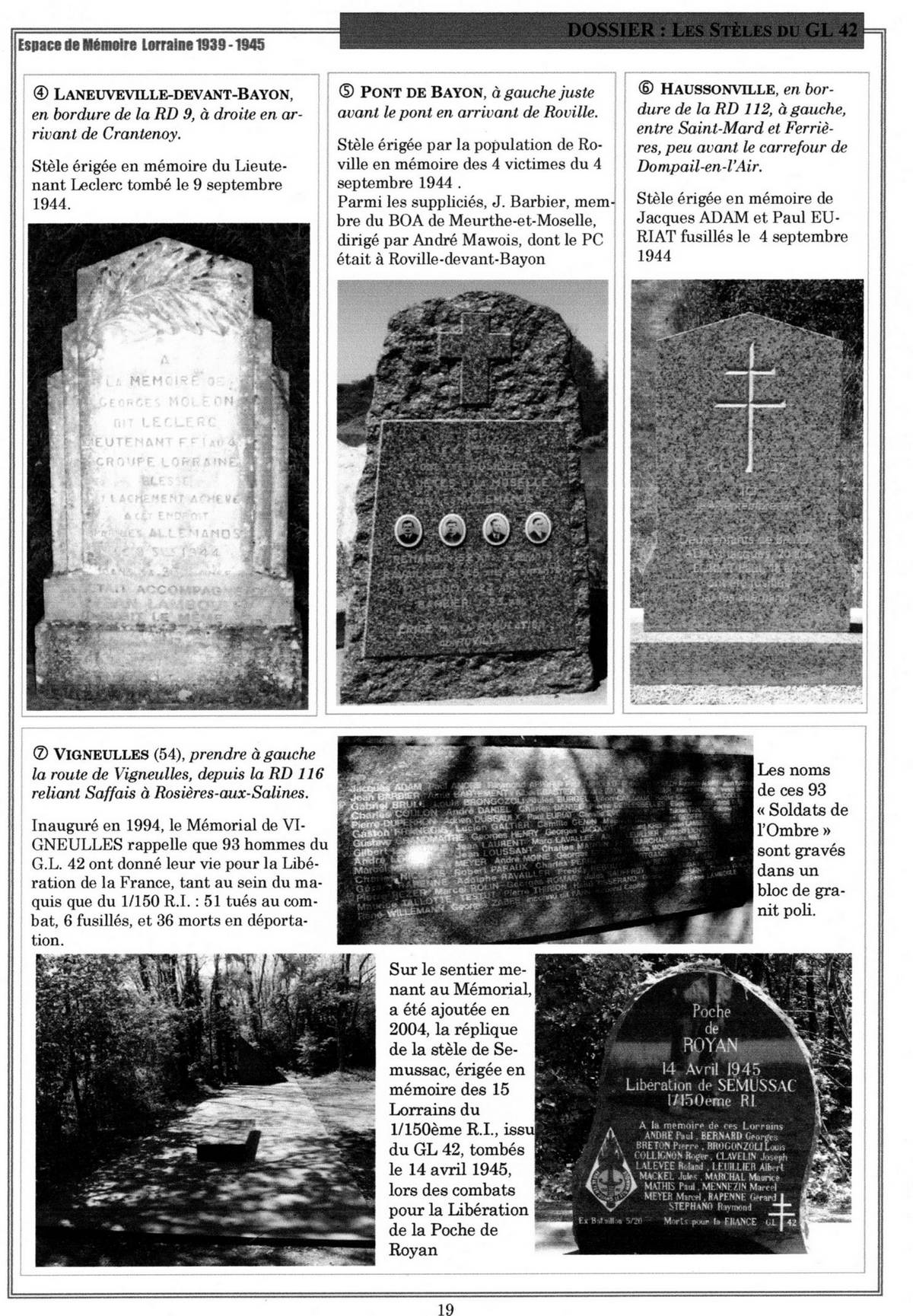 Articles 1944 - 1994 Historique du Maquis Cérémonie de septembre 2012 Circuit des Stèles du GL 42 Haut de page