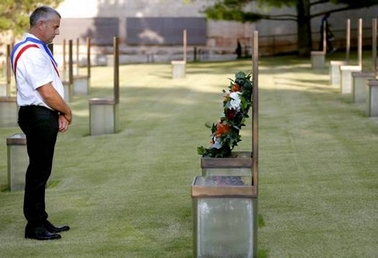Hinschberger lays a wreath Sunday at the Oklahoma City National