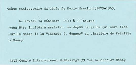Cordier, président du Comité International Marie Marvingt vous invite à
