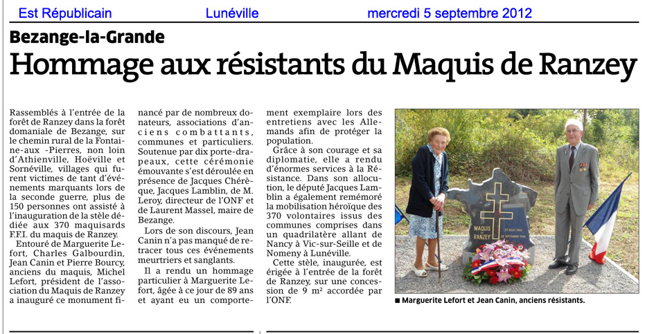 Un rappel documenté et complet sur le Maquis de Ranzey