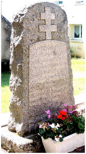 | LE MÉNIL MITRY, à proximité du cimetière, à gauche à l'entrée du village. Stèle érigée en mémoire des 7 maquisards, dont le capitaine Duperron, tués lors de l’attaque allemande du 3 septembre 1944. ![]() |