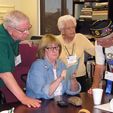 14h30, arrivée du premier groupe de la saison 2012, le Cercle Généalogique de Nancy, amené par Dominique Baguet. Remerciements à Jean-Marie Nicolas, Président des ACPG-CATM, venu avec son épouse, et qui fera don de 8 cartes postales de Rob Cadoré. Surprise, ce sont une cinquantaine de visiteurs qui se succèderont pour cette première ouverture. |