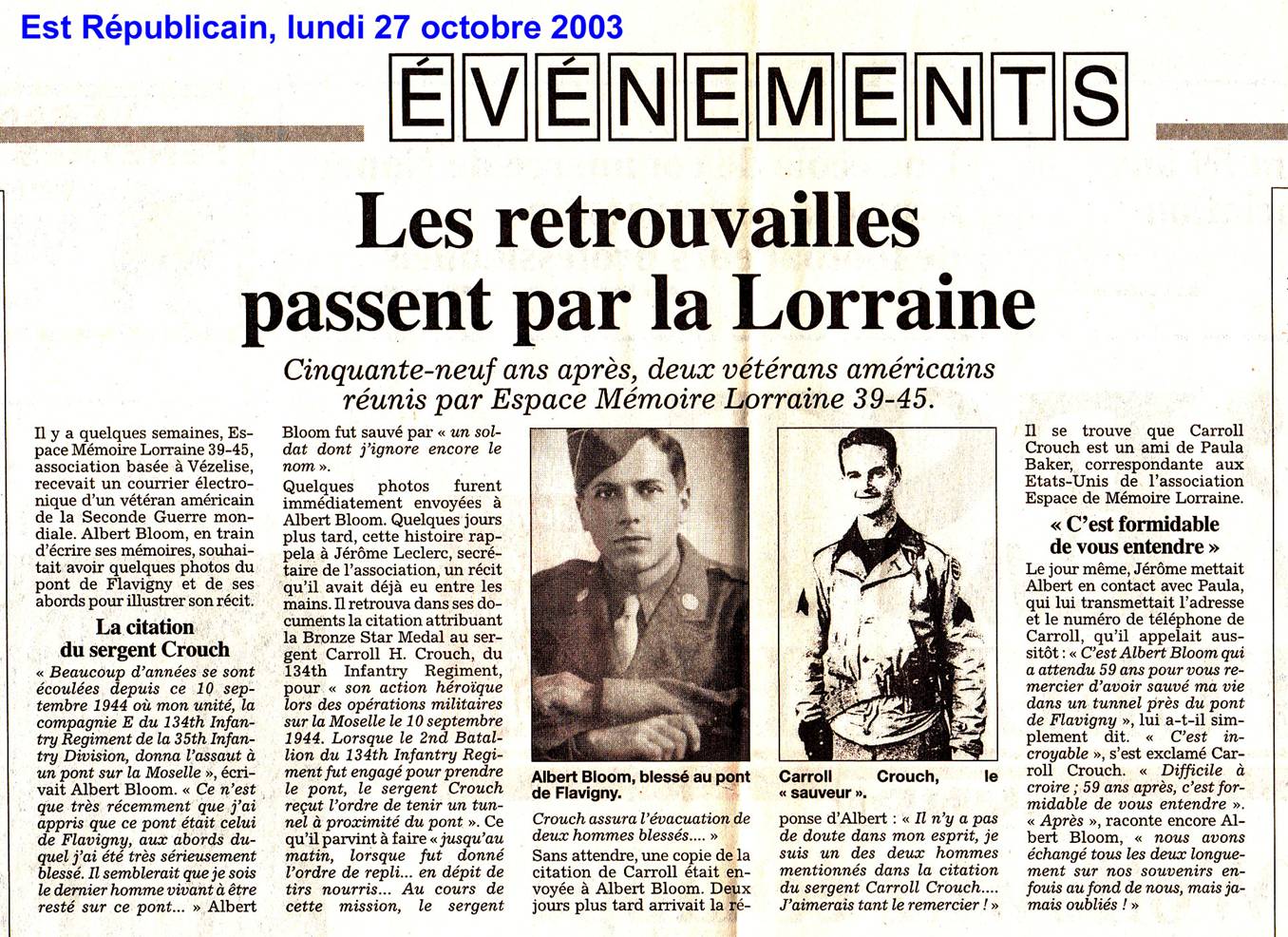 Carroll CROUCH aura 91 ans au printemps, il est toujours en contact avec Paula.
