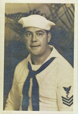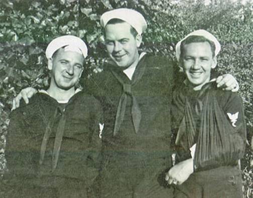 avec deux de ses collègues cuisiniers dans les Seabees |