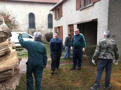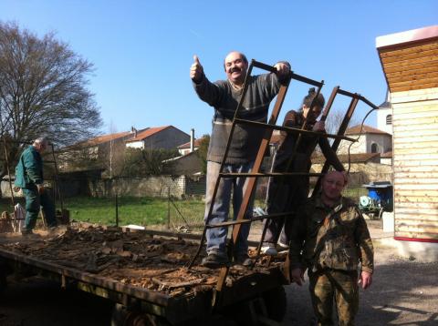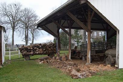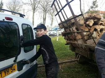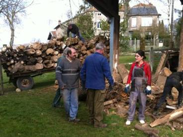 Matin, première étape vider la 5ème remorque de bois !