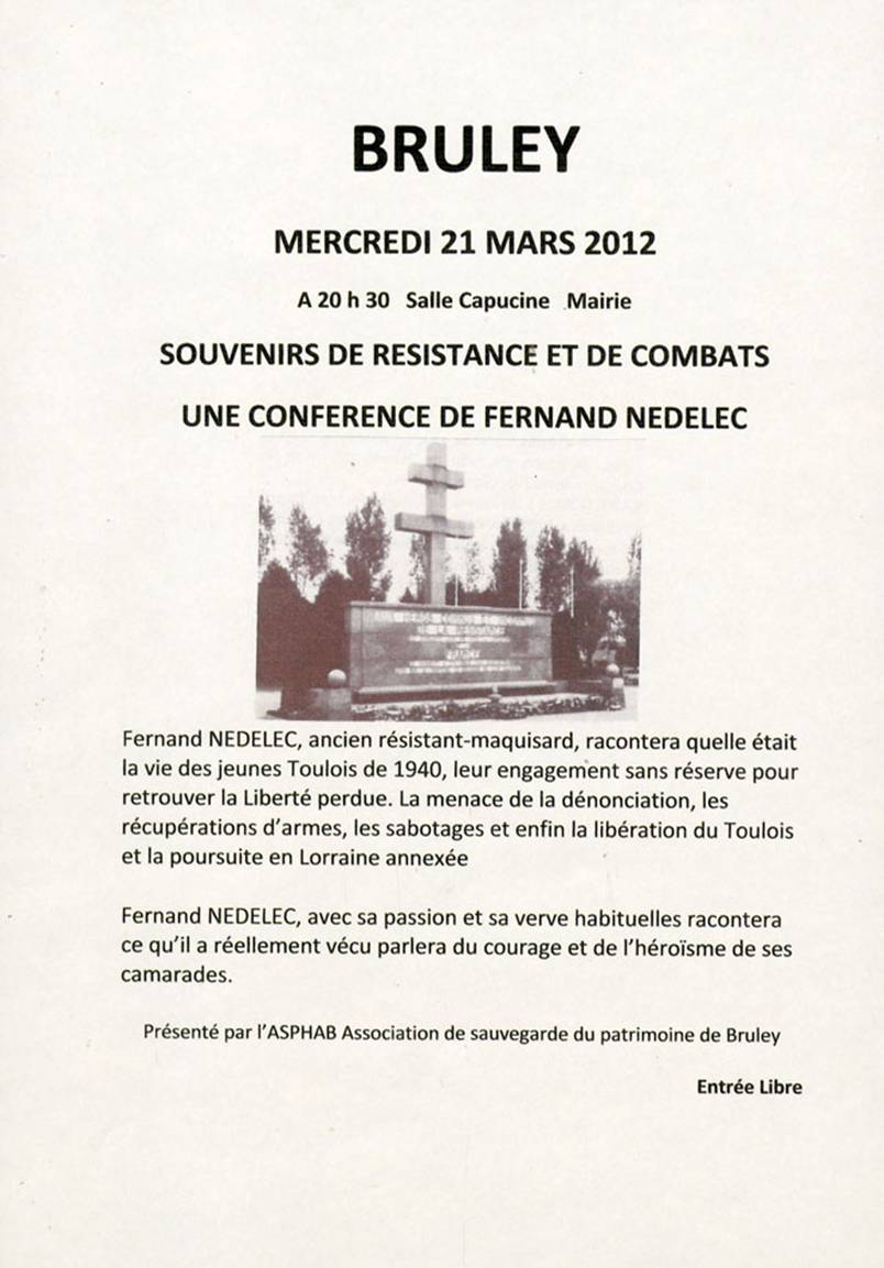 Conférence de notre ami Fernand NEDELEC :