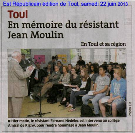Fernand Nédelec rend hommage à Jean MOULIN et présente la Résistance en Lorraine