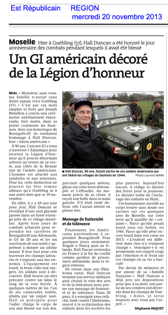 19 novembre 2013 Guébling et Bourgaltroff La Légion d’Honneur remise à Hall Duncan