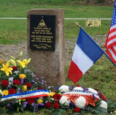 ![]() La plaque dédiée à Ruben Rivers à Guébling |