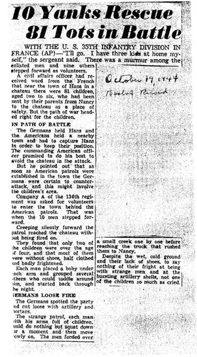 Etudiant l’article transmis par les filles d’Archie Hughes à Marilyn, Paula découvrait que ce document était celui qui donnait le plus de détails sur l’aventure de la Patrouille des bébés. Cet article, publié le 19 octobre 1944, dans plusieurs journaux américains dont « The Oregonian» était signé par Wes Gallagher, correspondant de guerre de l’Associated Press.