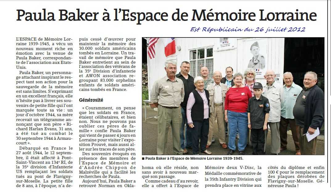 Bradley CLARK et Visites de la Famille CLARK à Omelmont et à l'Espace de Mémoire
