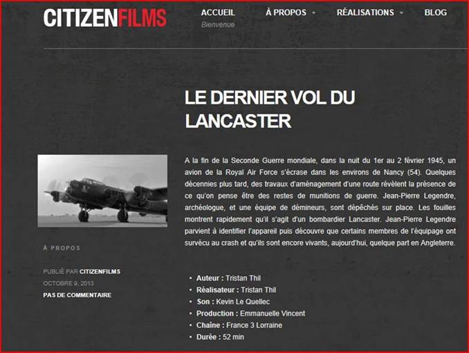 Lancaster de Fléville pour le tournage d’un film qui sera présenté sur