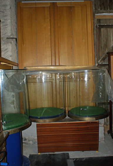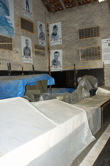 C’est vide ! Pour la deuxième fois, la météo était à la pluie. Impossible de travailler en extérieur. Mais, une fois encore, elle n’a pas découragé la petite équipe de volontaires de venir pour finir de vider les vitrines et protéger les objets et documents pour l’hiver. Dans la bonne humeur, Tonton, Médérick, Jean-Emile, Jean-Marie, Paul, Gérard, Nicolas, Serge s’activaient, et en fin d’après midi, les vitrines étaient vides ! |